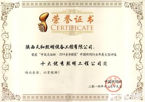 2014金手指獎獲得“十大優秀照明工程公司”